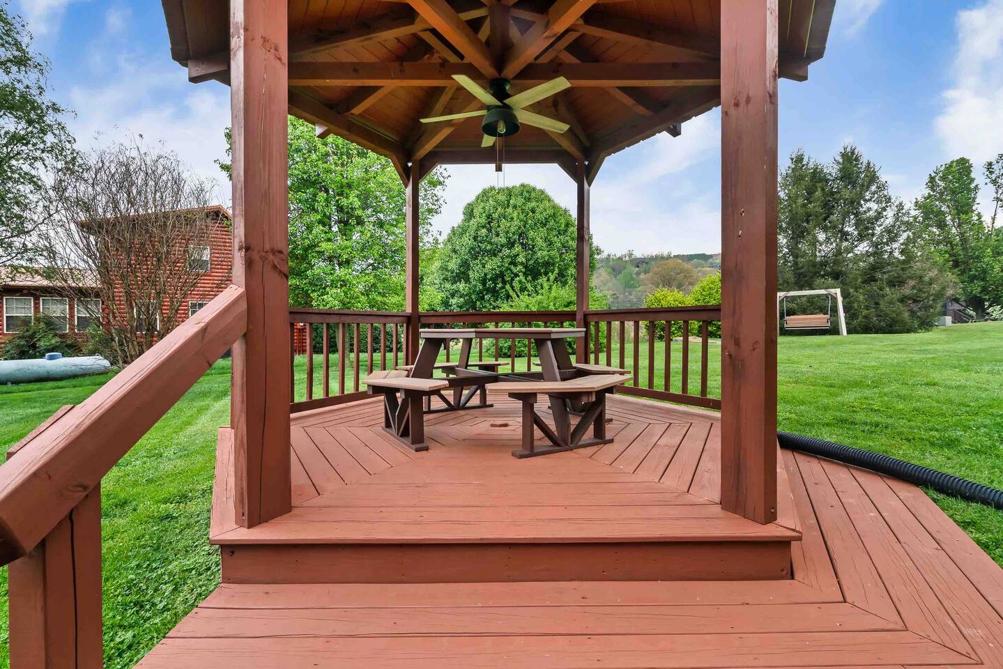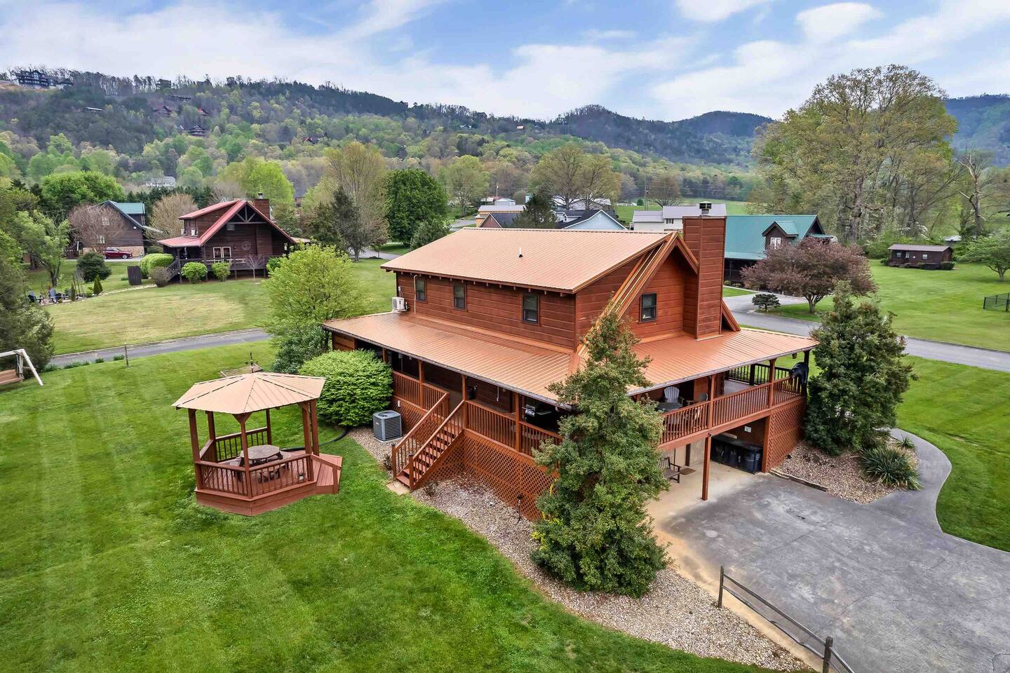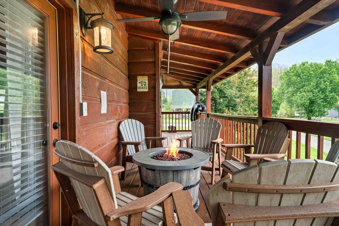 Driving to the cabin on arrival, you'll be awestruck by the majestic mountain ranges of the Great Smoky Mountain National Park. Wrapping the entire home, a large deck is the perfect outdoor retreat. Relax in rocking Adirondack chairs or sway peacefully in the swinging love seat as burgers sizzle on the gas grill. In the evening, unwind in the private hot tub or around the gas fire pit. Play horseshoes in the grassy backyard. A charming gazebo with a picnic table is perfect for alfresco meals.