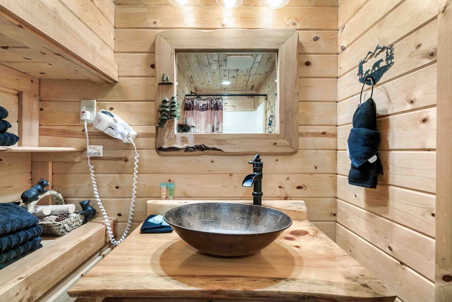 Guests have access to the entire cabin, with exception of owner’s storage areas. Guests also have access to swimming pools at Honeysuckle Meadows between May and October, as well as year round access to their catch and release stocked fishing pond.